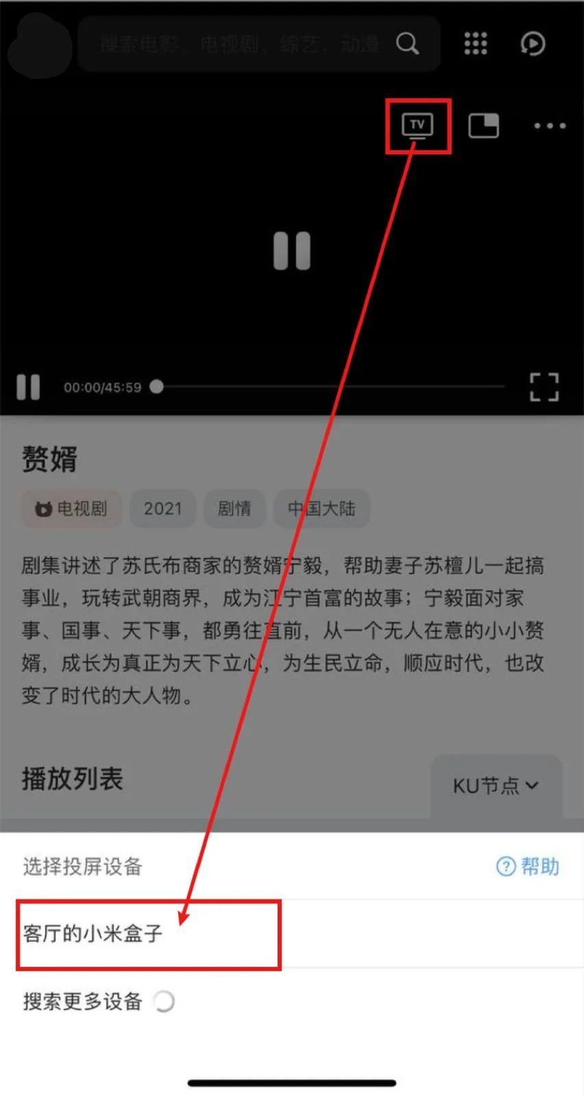 打开夸克浏览器->打开奈飞中文网-2025年Netflix最新电影-Netflix在线免费观看->播放视频->选择·····右上角 … ->投屏->等待搜寻出智能电视/电视盒子->选中,即可投屏。
