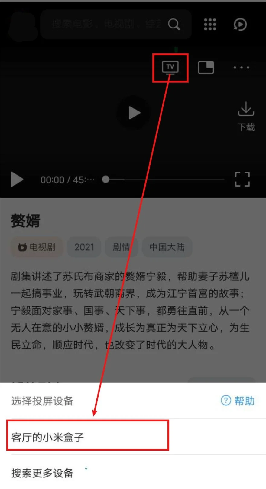 打开QQ浏览器(会接管网页播放器)->打开奈飞中文网-2025年Netflix最新电影-Netflix在线免费观看->播放视频->选中投屏图标->等待搜寻出智能电视/电视盒子->选中,即可投屏。